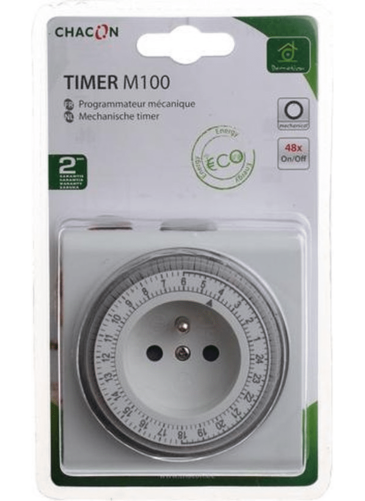 Bespaar energie en geld door uw apparaten automatisch uit te schakelen in plaats van ze urenlang niet te gebruiken - Een schakelaar aan de zijkant - 1 tot 48 cycli aan en uit per dag - 15 minuten per cyclus - Vermogen: 3500 W max.